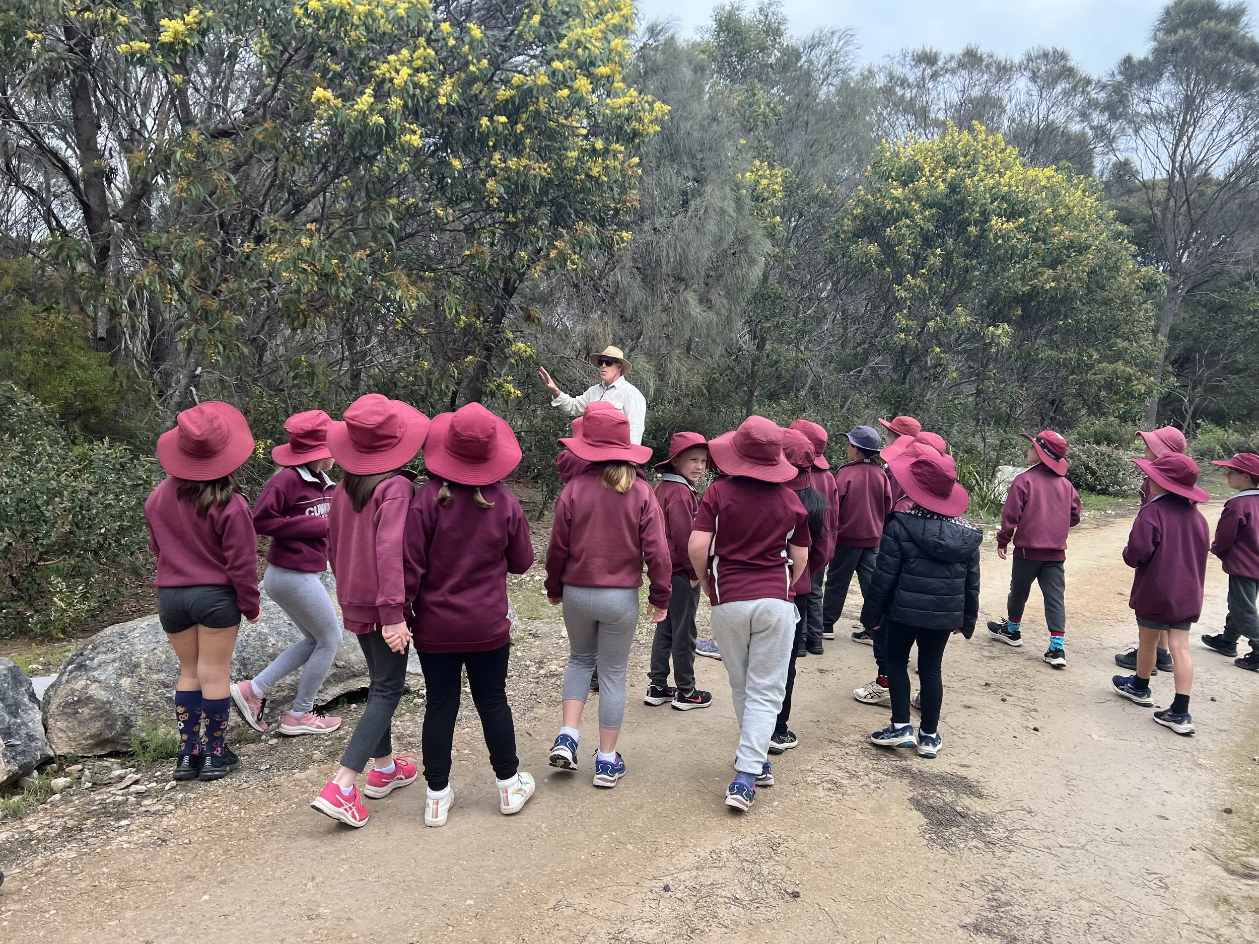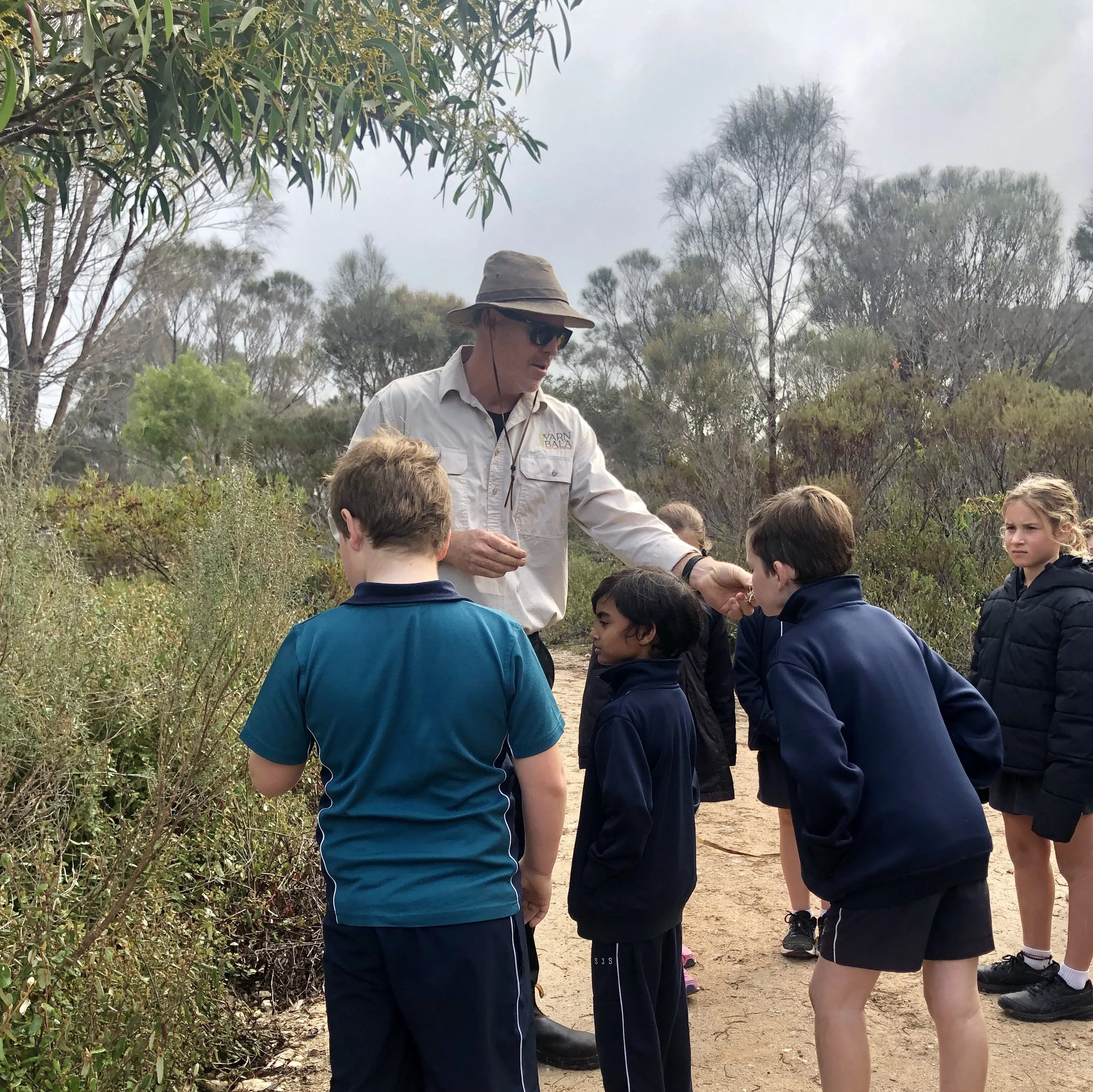 Our Educational Experience is a specially adapted version of our popular Wild Yarnbala tour, tailored to suit the age, interests, and learning levels of school groups. Set within a critically endangered Grassy She-oak Woodland on Calcrete, this program invites students to explore, discover, and develop a deeper understanding of the natural world through sensory exploration and guided interpretation.